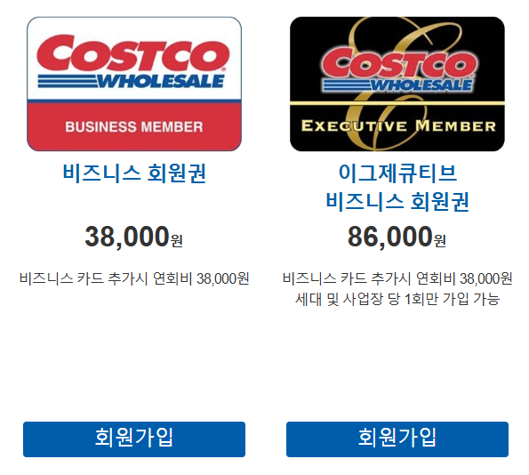 코스트코는 크게 3가지 회원권을 판매합니다. 표로 한눈에 확인해보세요.