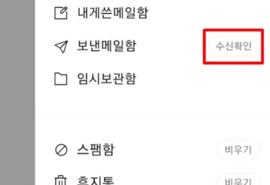 - 메뉴가 나오면 '보낸메일함' 옆에 '수신확인' 버튼이 있어요